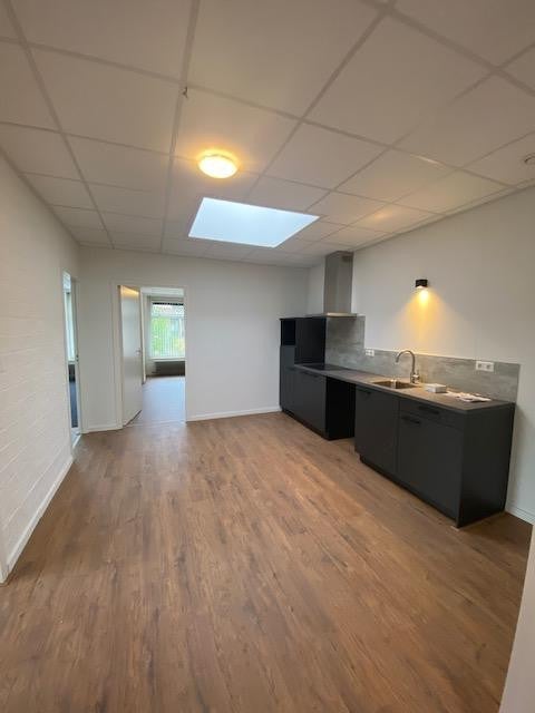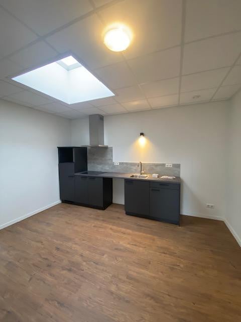 Het appartement is gelegen op de 1e verdieping van het pand. Je komt binnen in een hal die toegang biedt tot de woonkamer met open keuken. De woonkamer met open keuken is ca. 20m2 en heeft een dakraam waardoor het mooi licht is. De keuken beschikt over een inductie kookplaat, afzuigkap, koelkast (met vriesvak) en ruimte voor een vaatwasser.
