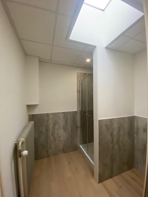 Vanuit de woonkamer heb je toegang tot de drie (slaap)kamers waarvan 2 zeer ruim, de bijkeuken, de badkamer en wasruimte. De bijkeuken heeft een keukenblokje met wastafel en geeft toegang tot de badkamer. De badkamer beschikt over een toilet, aparte douche en een wastafel(meubel).