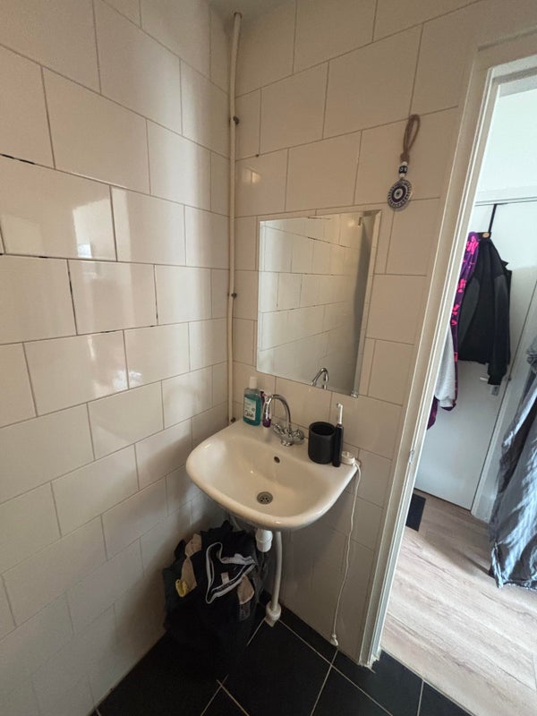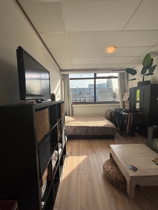 Deze studio (29 m2) beschikt over een woonkamer met keuken en een badkamer, welke is voorzien van een toilet, wastafel en douchecabine. De woonruimte is voorzien van een mooie vloer en lamellen.