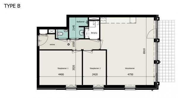 Ieder appartement heeft een eigen berging achter op het terrein. In de berging is verlichting en elektra aanwezig, handig voor bijvoorbeeld het opladen van een elektrische fiets.