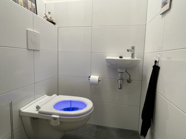 Je komt binnen in de hal met toilet van Villeroy & Boch. Via de hal kom je in de badkamer, twee slaapkamers van ca. 15m2 en 8m2 en de woonkamer.