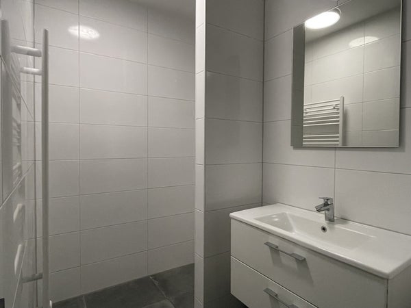 In de badkamer is een HansGrohe regendouche en wastafel met Villeroy & Boch onderkast aanwezig. De badkamer wordt tot aan het plafond betegeld en geeft je een gevoel van luxe.