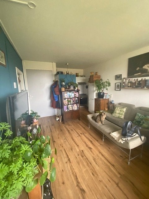 Indeling: Entree, hal met toegang tot de badkamer, ruime woonkamer met nieuwe half open keuken voorzien van een afzuigkap. Tevens een luxe badkamer welke o.a. is voorzien van een douche, toilet en wastafel. De badkamer is zowel vanuit de gang als de slaapkamer bereikbaar.