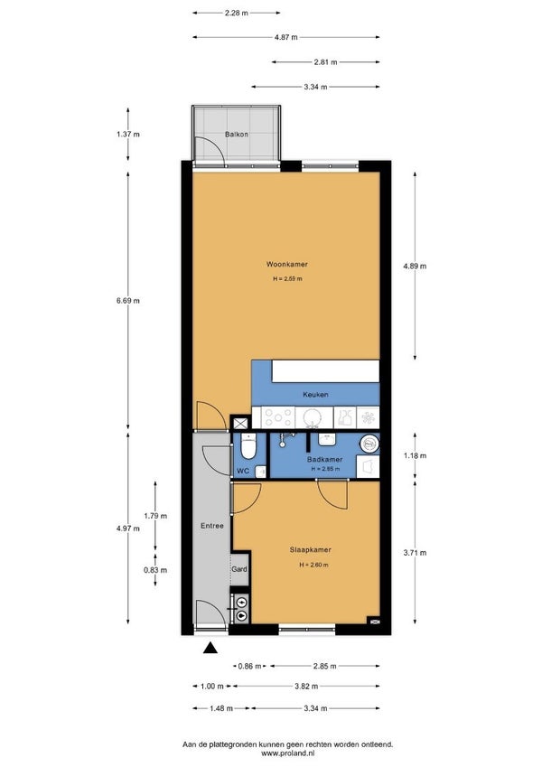 Indeling: entree met lift en berging op de begane grond. Appartement: hal, slaapkamer, badkamer met douche, wastafel en wasmachine-aansluiting. De woonkamer heeft een balkon en een open keuken die is voorzien van diverse apparatuur.