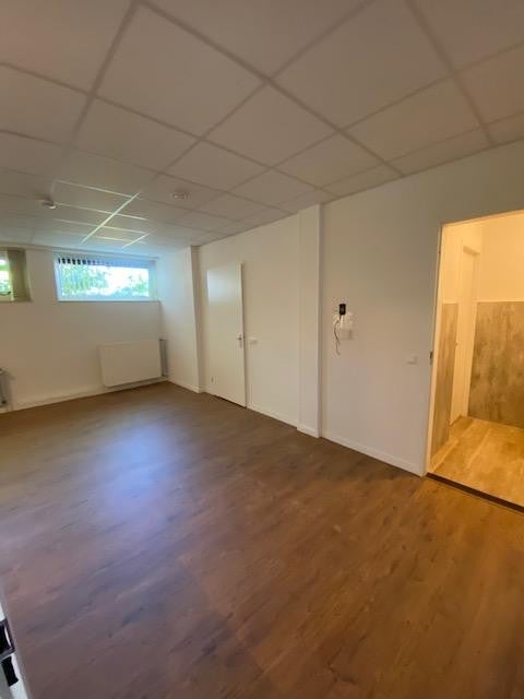 Het appartement is gelegen op de 1e verdieping van het pand. Je komt binnen in een hal die toegang biedt tot de woonkamer met open keuken en een slaapkamer. De woonkamer met open keuken is ca. 35m2. De keuken beschikt over een inductie kookplaat, afzuigkap, koelkast (met vriesvak) en ruimte voor een vaatwasser.