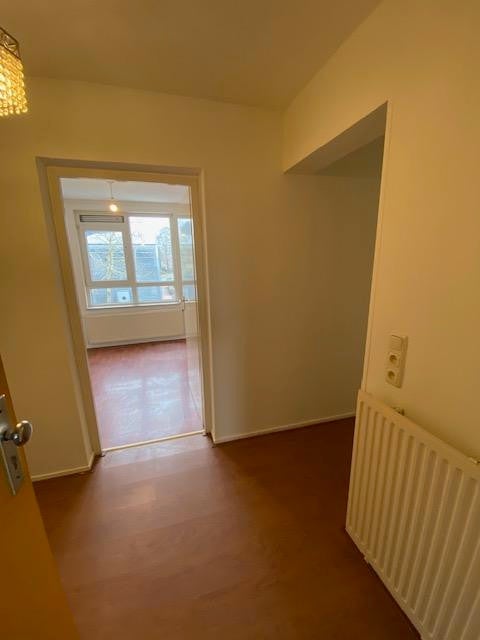 Je betreedt de woning in de hal. Vanuit daar kun je doorlopen naar de eerste slaapkamer (15m2), en de woonkamer met open keuken. Vanuit de woonkamer heb je toegang tot het balkon. Ook kan je vanuit de woonkamer door een soort tweede gang de badkamer betreden. De badkamer heeft witgoedaansluiting. Naast de badkamer bevindt zich het aparte toilet. Ook bevinden zich in deze gang de andere twee slaapkamers. Eerste slaapkamer (..m2) en tweede slaapkamer (..m2).