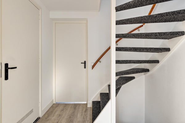 De entree van het appartement bevindt zich op de eerste etage. Via de trap kom je op de tweede verdieping, waar zich een overloop bevindt met toegang tot twee ruime slaapkamers en de badkamer. De badkamer is netjes afgewerkt en voorzien van een douche, wastafel, wastafelmeubel en handdoekradiator.