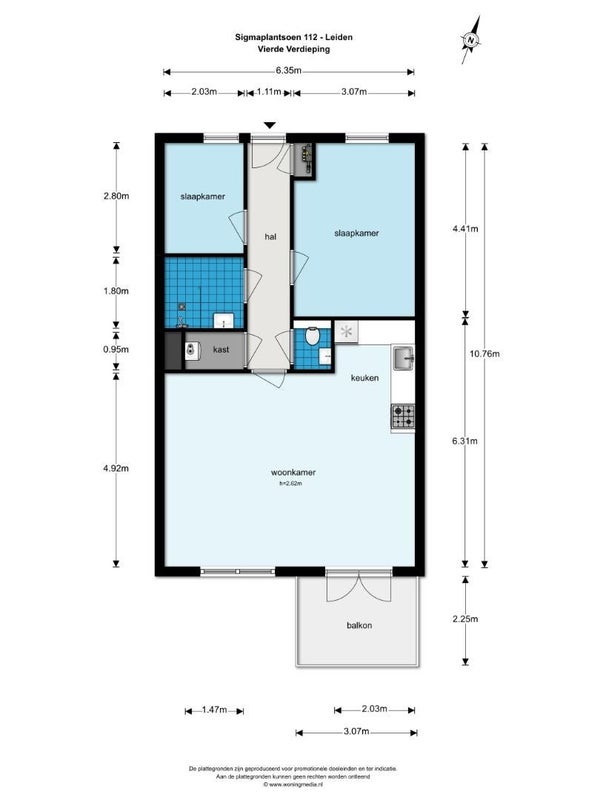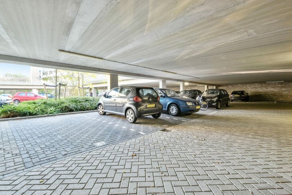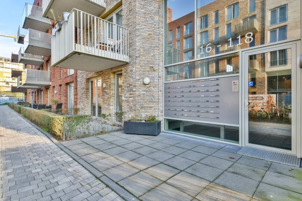 Indeling: 4de verdieping: Entree met hal. Twee lichte slaapkamers. Luxe badkamer met inloopdouche, glazen douchewand, handdoekradiator en een wastafelmeubel. Technische ruimte met opstelling warmte terugwininstallatie en wasmachine aansluiting. Apart toilet met fontein. Ruime en lichte woonkamer met toegang tot het zonnige balkon en vrij uitzicht over het Rijn- en Schiekanaal en richting Polderpark Cronesteyn. Moderne open keuken in L-vorm, voorzien van een keramische kookplaat, koel/-vriescombinatie, combi-magnetron, onder- en bovenkasten en een natuurstenen aanrechtblad. Het appartement is volledig voorzien van een keurige laminaatvloer.