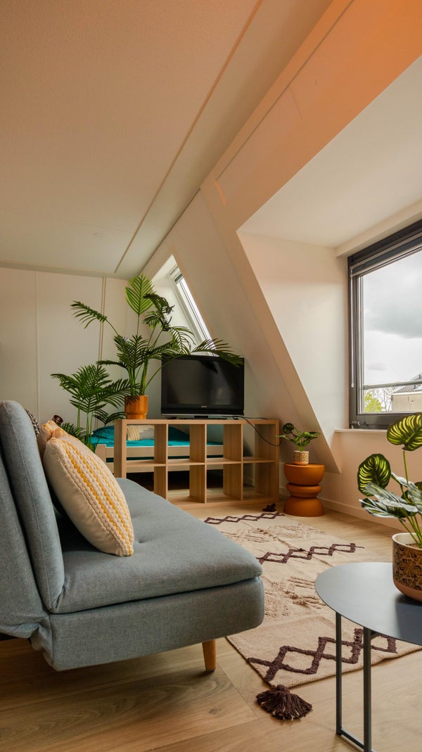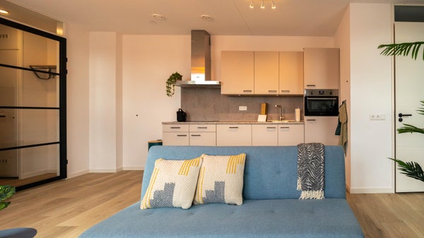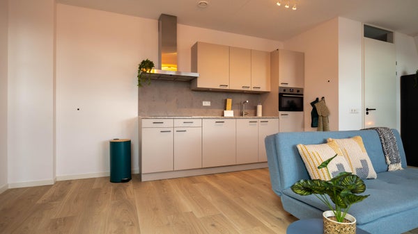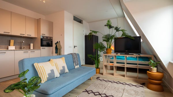 In de West Havenstraat komt op korte termijn deze prachtige studio vrij, die van alle gemakken is voorzien. De hoofdentree biedt toegang tot de gezamenlijke binnentuin en fietsenstalling. De studio is bereikbaar via een vaste trap of moderne lift en is gelegen op de tweede verdieping. In de hal is er toegang tot de berging. Hier staat de duurzame, energiezuinige en geluidsarme warmtepomp en de was-droogcombinatie. Het biedt ook directe toegang tot de woonkamer. De studio is slim opgedeeld in zowel een woon- als slaapgedeelte en wordt prachtig verlicht door de grote ramen aan de voorkant. De woning is geheel voorzien van vloerverwarming die is doorgetrokken in de badkamer. De keuken is voorzien van een stijlvolle inductiekookplaat, een ruime koel-vriescombinatie, een handige vaatwasser en een multifunctionele combi-oven. De badkamer is voorzien van een elegant toilet, een verfijnde wastafel met bijpassend meubel en een ruime inloopdouche voor de ultieme douche beleving. De woning is voorzien van 3 zonnepanelen waardoor er een energiezuinige woonruimte is ontstaan. Op loopafstand van het historische centrum, musea, winkels, restaurants en het strand om de hoek. en binnen 5 minuten fietsen van het centraal station. De woning wordt volledig gemeubileerd en in absolute nieuwstaat opgeleverd.