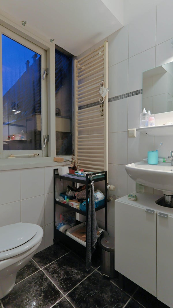 Via de gezamenlijke entree en trap bereik je de woning. De lichte woonkamer is ruim opgezet en heef een fraai uitzicht. De open keuken is voorzien van diverse apparatuur. De ruime slaapkamer is gelegen aan de rustige achterzijde. De badkamer is compleet met douchehoek, toilet en wastafel.