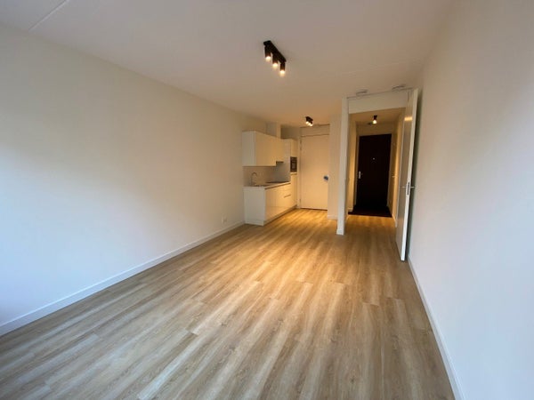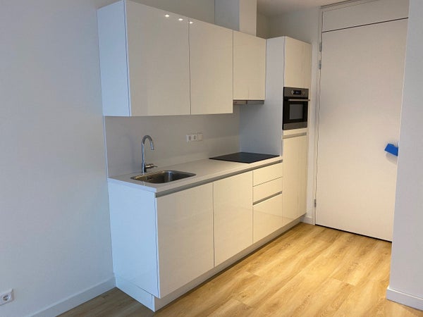 Entree aan de zijkant van het gebouw met bellenplateau en brievenbussen. Entree op de begane grond. Binnenkomst in hal met toegang tot de verschillende vertrekken. Woonkamer met luxe openkeuken voorzien van vaatwasser, koelkast, inductie kookplaat, afzuigkap en combi-magnetron. Luxe badkamer met inloopdouche, wastafel, toilet designradiator en wasmachine aansluiting. Vanuit de hal toegang tot de slaapkamer.