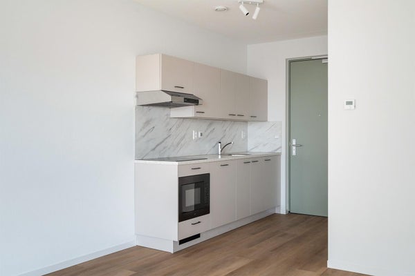 Deze studio heeft alles wat je nodig hebt. Dankzij de lichte en open indeling vormen de woon-, slaap- en kookruimtes één moderne leefruimte. De grote ramen van vloer tot plafond zorgen voor veel natuurlijk licht en geven de studio een ruimtelijk gevoel.