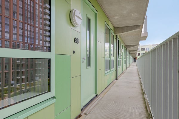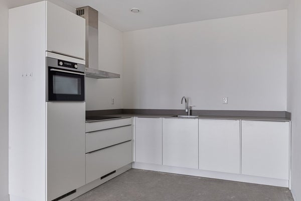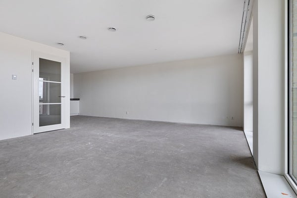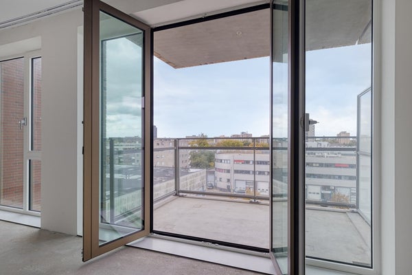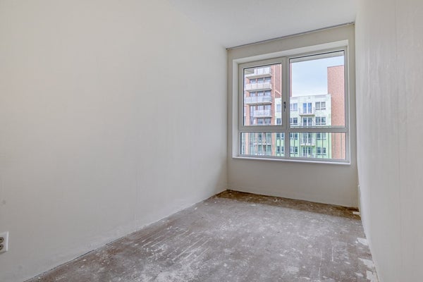 Het appartement ligt op de vijfde verdieping van een in 2023 opgeleverd complex. De lift brengt je naar boven, waar je via de galerij – met uitzicht op de binnentuin – bij je voordeur komt. Binnen tref je een frisse en lichte woning aan. Omdat het appartement ongestoffeerd wordt opgeleverd, heb je alle vrijheid om het naar eigen smaak in te richten.