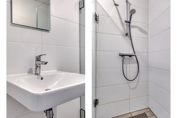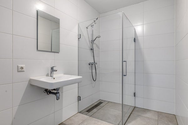 Het appartement beschikt over twee slaapkamers. Ideaal als je een thuiskantoor, logeerkamer of kinderkamer nodig hebt. De badkamer is modern uitgevoerd, met een inloopdouche en dubbele wastafel. De aansluiting voor de wasmachine bevindt zich in een aparte technische ruimte.