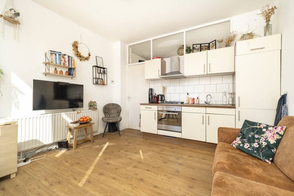 De studio heeft een oppervlakte van circa 29 m² en beschikt over een separate slaapkamer. Een groot pluspunt is de eigen voordeur aan de straatzijde, waardoor je geen entree hoeft te delen met anderen. De voorzijde van de woning is vrijwel volledig voorzien van glas, wat zorgt voor een aangenaam lichte leefruimte en goede ventilatiemogelijkheden.