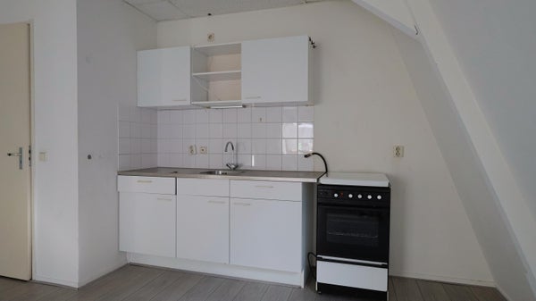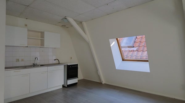 Via de gezamenlijke entree en trap bereik je de woning. De woonkamer is heerlijk ruim. De keuken en badkamer zijn eenvoudig en functioneel. De slaapkamer ligt tevens aan de achterzijde en biedt voldoende ruimte voor een tweepersoonsbed en kastruimte.