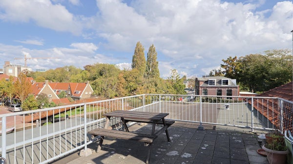 Een groot pluspunt is het gemeenschappelijke dakterras: een heerlijke plek om buiten te zitten en van de zon te genieten.
