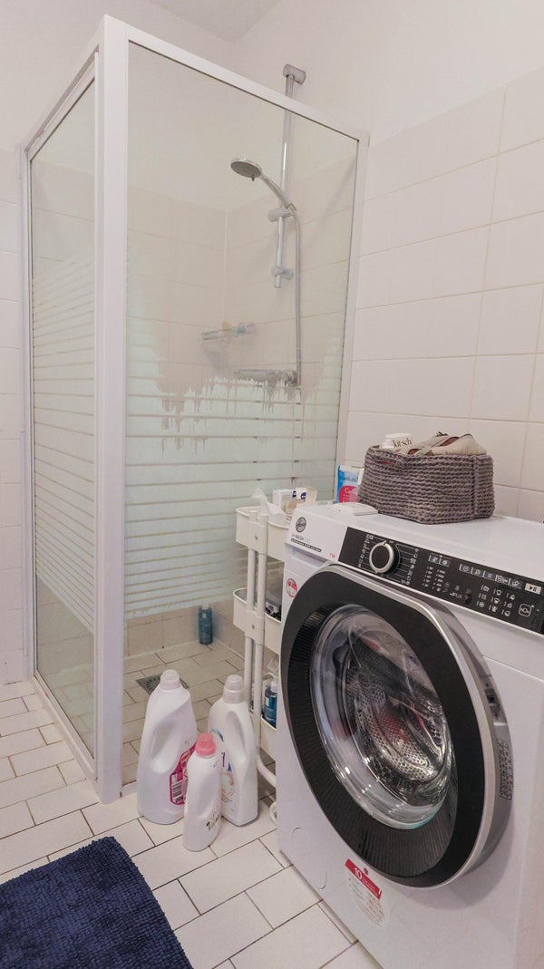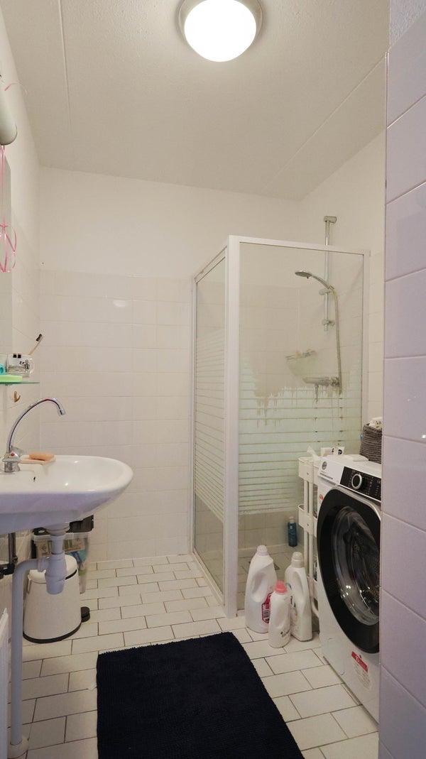 Via de hal is er toegang tot het separaat toilet, de badkamer en de slaapkamer.