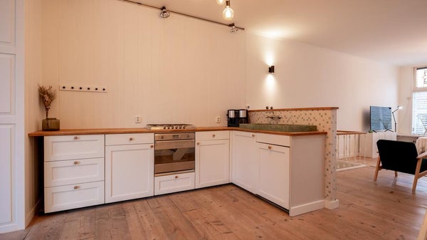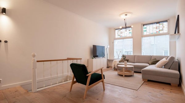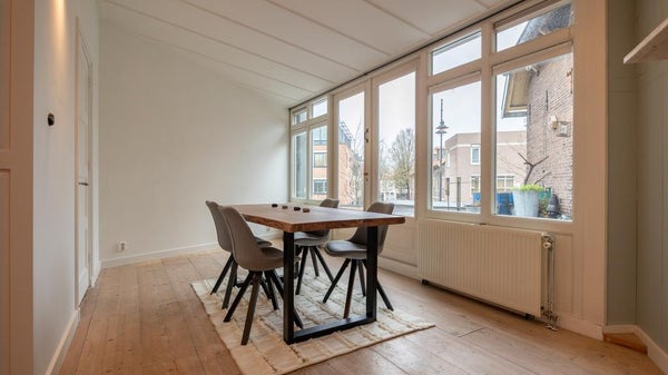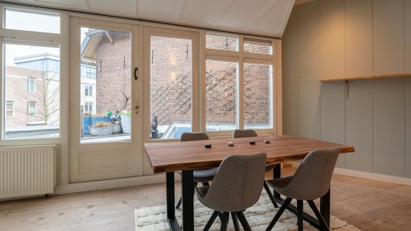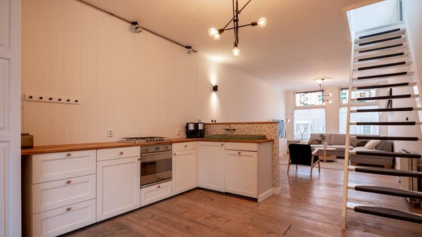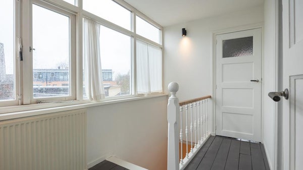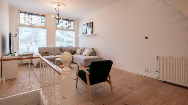 Midden in het centrum van Leiden met alle voorzieningen in de direct omgeving en lopend te bereiken. De entree op de begane grond komt uit in de hal waarvandaan er middels vaste trap toegang is tot de eerste etage. Deze is bijzonder ruim van opzet, licht door de vele ramen en hoge plafonds. Glas in lood, markiezen, houten vloer en retro details werken mee aan de moderne en toch karaktervolle sfeer in de woning. De ruime open keuken met houten werkblad is voorzien van de nodige opbergruimte en inbouwvaatwasser. Aan de achterzijde van de woning is de ruime eetkamer te vinden die mogelijk tevens als werkplek dienst kan doen. Hiervandaan is er tevens een toilet en separate bergkast bereikbaar alsmede het zonnige en prettig ruime dakterras middels openslaande deuren. De vaste trap komt uit op de tweede etage met vanaf de overloop toegang tot de slaapkamer, gelegen aan de voorzijde. De badkamer is volledig gerenoveerd en voorzien van een moderne inloopdouche, toilet en wasmachine. De kamer aan de achterzijde is ideaal te gebruiken als studeer-, logeer-, berging- en/of waskamer. Met winkels, openbaar vervoer én het stadspark direct om de hoek is de ligging van deze woning ideaal te noemen.