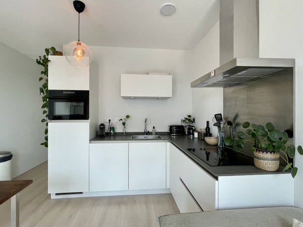 Dit tweekamerappartement (42 m²) bevindt zich op de tweede verdieping. Compact, slim ingedeeld en voorzien van alles wat je nodig hebt. Het appartement beschikt over een slaapkamer van ca. 9 m², een moderne keuken met inductiekookplaat, combi-oven/magnetron, afzuigkap, koel-vriescombinatie en vaatwasser, en een badkamer met wastafel en spiegel, zwevend toilet, handdoekradiator en plafondhoog betegelde wanden.