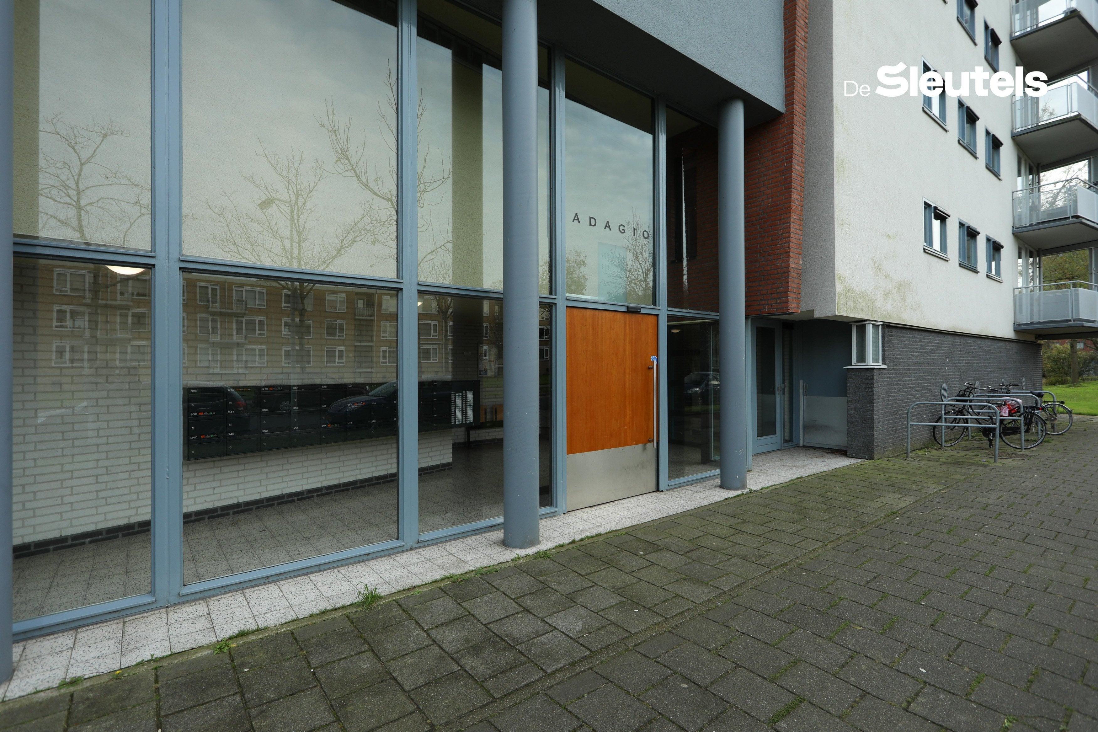 Entree in de gemeenschappelijke hal met liften en een video intercom. Privé parkeerplaats in de afgesloten garage.
