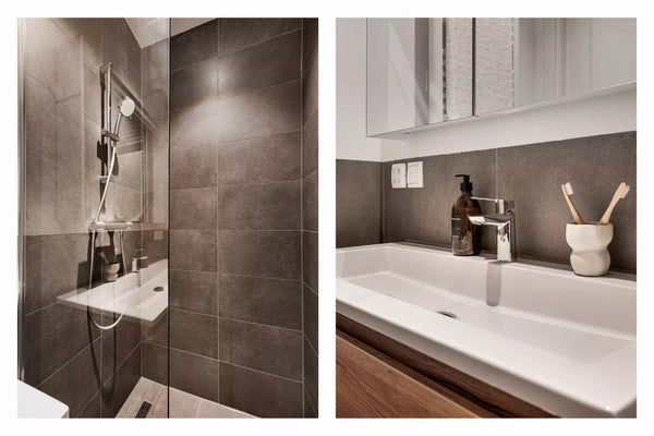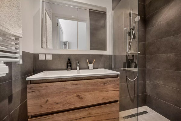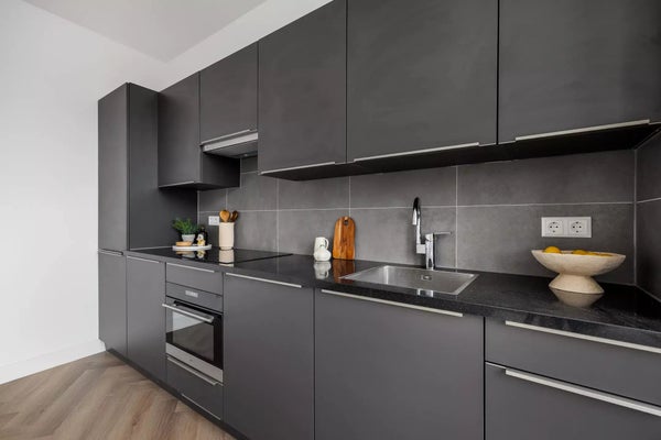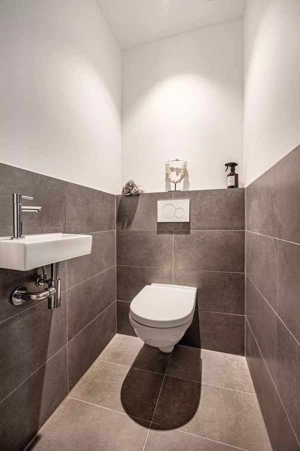 - 1e verdieping: Lichte woonkamer met open keuken (o.a. vaatwasser, combi-oven, kookplaat, koelkast, vriezer en wasmachine). Moderne badkamer, separaat toilet en twee slaapkamers