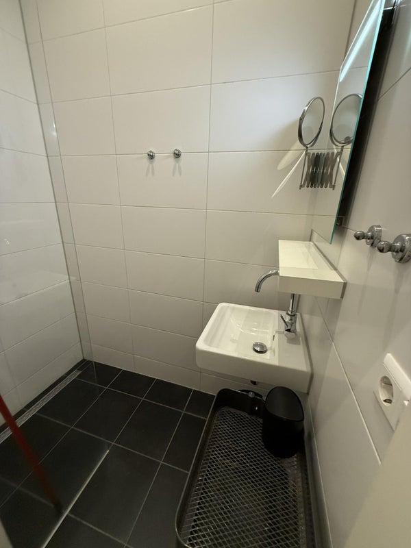 Een slaapkamer heeft een dubbele bed, de andere slaapkamer heeft een eenpersoonsbed. Het is een zeer licht appartement. Gescheiden badkamer voorzien van een douche, wastafel en toilet. Kast met wasmachine en droger.