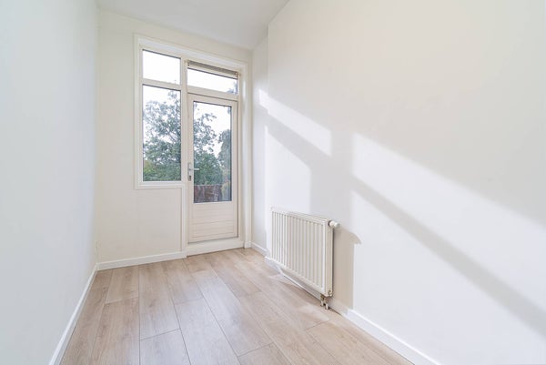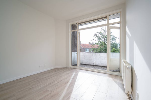 Aan de achterzijde van het pand bevindt zich een ruim balkon dat over de volledige breedte van de woning loopt. Het balkon is bereikbaar via de openslaande deuren in de woonkamer én via de slaapkamer. Dankzij de gunstige ligging kun je hier vrijwel de hele dag van de zon genieten.