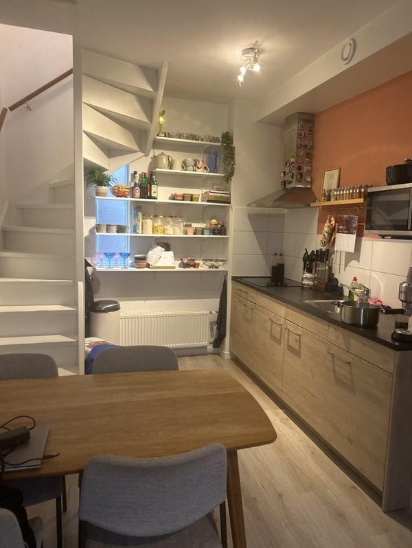 Indeling: hoofdingang Elisabeth Gasthuishof, bellentableau entree, hal naar buitendeur, entree binnentuin. Entree woning, woonkamer met open keuken voorzien van een 4-pits kookplaat, afzuigkap en inbouwkoelkast. Trap naar de 1e etage, overloop met CV opstelling en wasmachineaansluiting. Badkamer voorzien van een douche, toilet en wastafel. Slaapkamer gelegen aan de voorzijde.