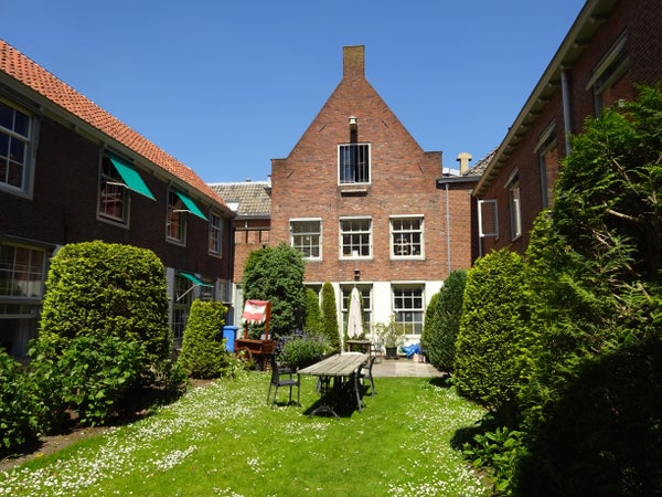 De historie komt je tegemoet! Deze gemeubileerde hofjeswoning is gelegen in een groen, lommerrijk hofje midden in het centrum van Leiden. Dichtbij verschillende winkels, horeca en Leiden Centraal Station gelegen. De woning ligt rond een groene, gemeenschappelijke binnentuin met de oudste boom van Leiden!