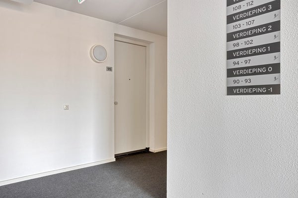 Bij binnenkomst in het gebouw wordt u verwelkomd door de chique en goed onderhouden entree. Zowel een lift als een trap zijn beschikbaar, die u naar boven leiden.