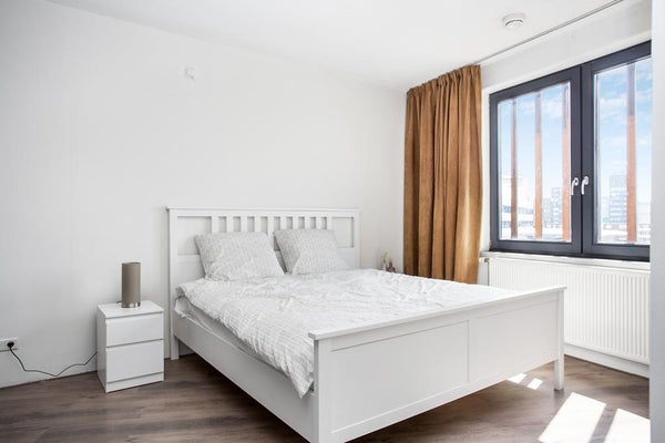 Het appartement bevindt zich op de vierde verdieping en beschikt over een ruime en lichte woonkamer met vrij uitzicht over het centrum, een moderne open keuken, twee comfortabele slaapkamers en een strak afgewerkte badkamer. Dankzij de ligging op loopafstand van het trein- en busstation zijn er uitstekende verbindingen richting onder andere Almere, Amsterdam/Schiphol en Zwolle.