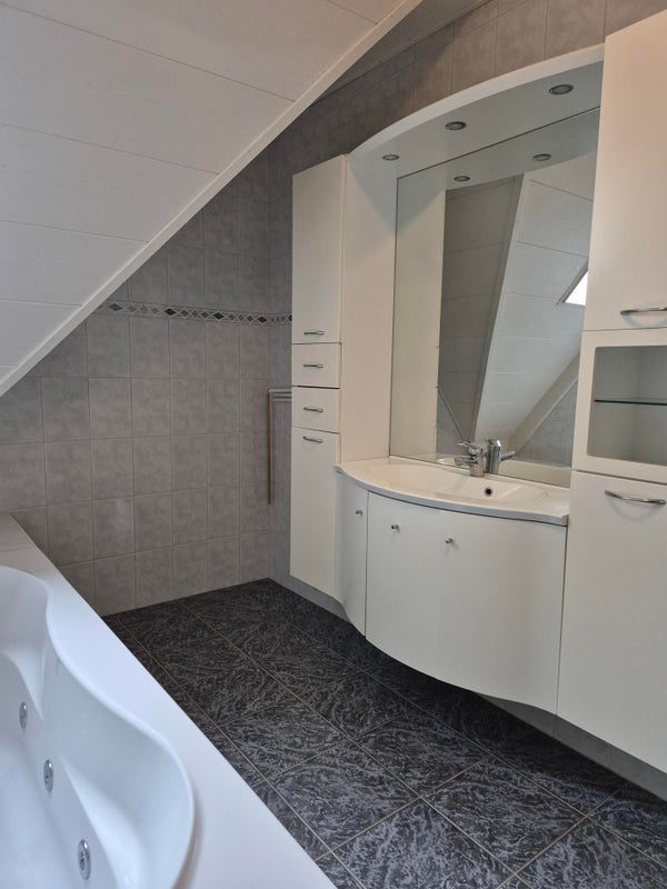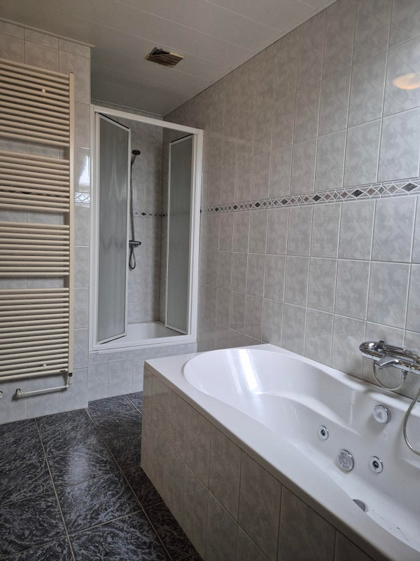 De badkamer is compleet en biedt zowel een ligbad als een aparte douche. Daarnaast nog een separaat toilet en een wasruimte welke tevens als bergruimte gebruikt kan worden.
