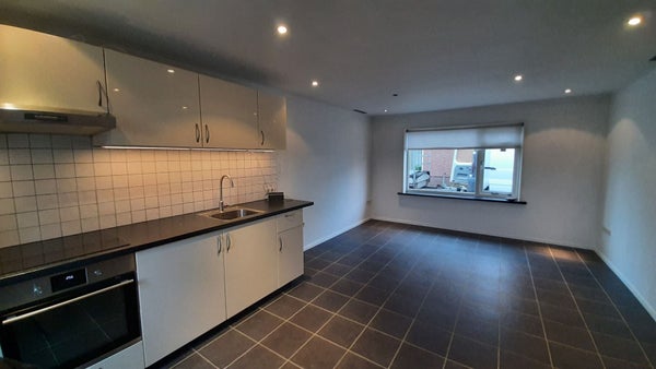 Woonkamer is voorzien van vloerverwarming en goede lichtinval. Keuken is met electrische kookplaat, afzuigkap, oven en diverse kastjes. Badkamer met douchehoek, wastafel met meubel, spiegel met verlichting en toilet.