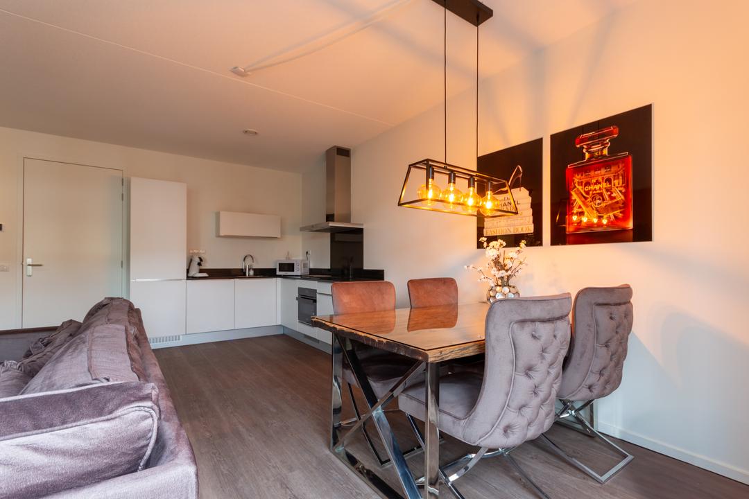 Dit stijlvolle driekamerappartement in Lunteren combineert luxe en comfort op een centrale locatie. Met een oppervlakte van 74 m², twee slaapkamers, een open keuken en een complete badkamer is het een ideale woonruimte. De woonkamer profiteert van veel natuurlijk licht door de grote ramen en biedt een prachtig uitzicht. De moderne keuken is uitgerust met een koelkast, oven, inductiekookplaat en gasfornuis. De badkamer heeft een ruime inloopdouche en een dubbele wastafel. Aan de achterzijde ligt een zonnig terras van 46 m², perfect voor buitenleven. Het gebouw, dat uit 11 appartementen bestaat, heeft een lift, een parkeergarage met 25 plaatsen en energielabel A++, dankzij vloerverwarming en goede isolatie. Minimaal 24 maanden huren.