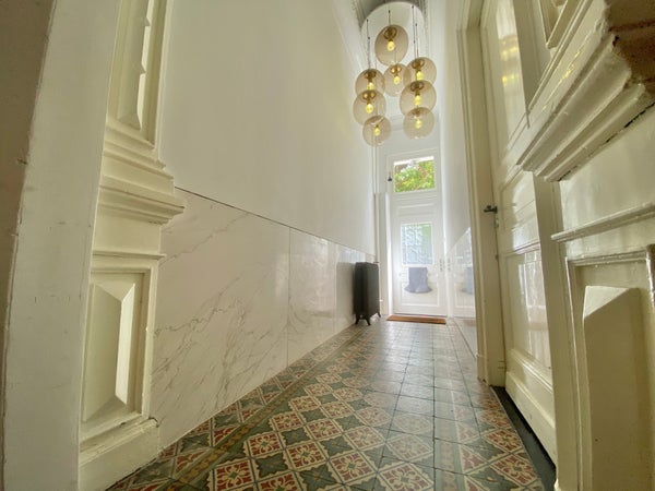 - Trap volledig uitgevoerd met wit marmer en designverlichting.