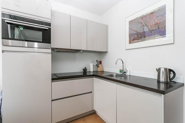 De keuken is uitgerust met alle gemakken: koelkast, inductiekookplaat met afzuigkap, combi-oven en vaatwasser.