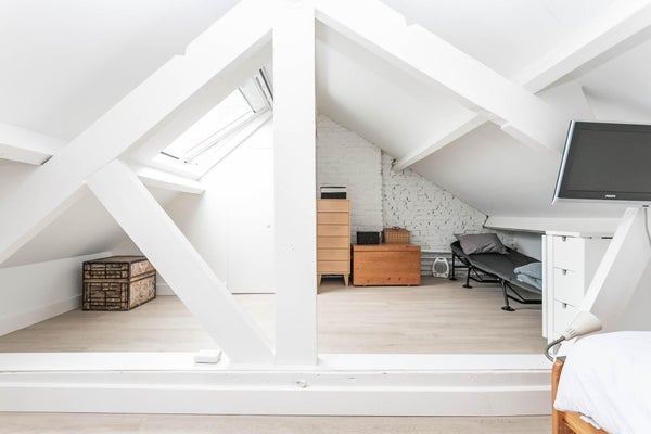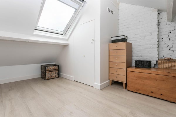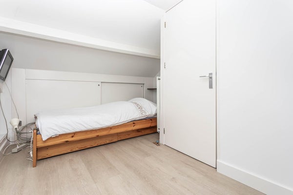 De derde slaapkamer bevindt zich op de derde verdieping en is ingericht met een eenpersoonsbed en bureau, ideaal als logeer- of werkkamer.