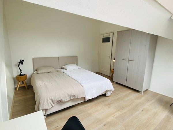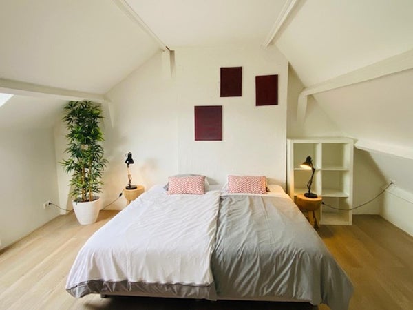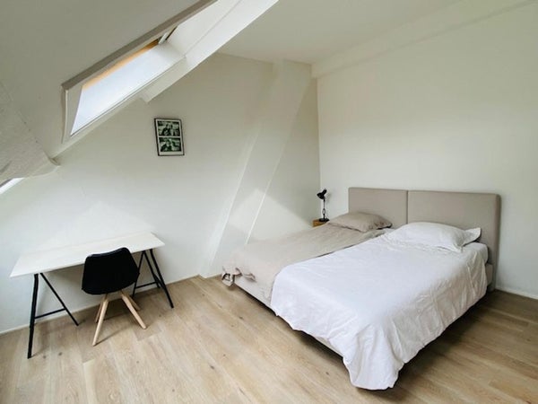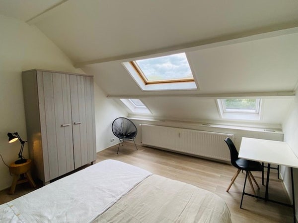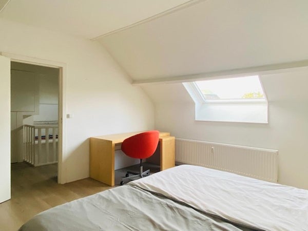 Middels vaste trap bereikt u de bovenste verdieping, waar een kleine werkruimte is gerealiseerd. De tweede slaapkamer van 26.3 m2. Met prachtig uitzicht op Wyck en veel lichtinval is dit een zeer comfortabele ruimte.