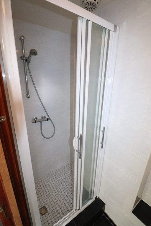 Aan de rechterkant van de gang bevindt zich een apart Toilet dat gedeeld wordt met een medebewoner die op de 1ste etage woont en een aparte eigen privé badkamer.