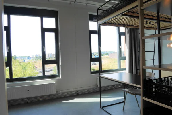 Luxe gemeubileerde studio in het moderne campuscomplex 'Wauwhaus'. De studio is uitgerust met een tweepersoonsbed (140x210cm), moderne en-suite badkamer, luxe open keuken (incl. inbouwapparatuur), royale kleding- & opbergkast, bureau met stoel, lounge sofa en high-speed internet. De studio is gelegen op de 2e etage (zuidzijde). Zie plattegrond voor de exacte ligging in het complex.