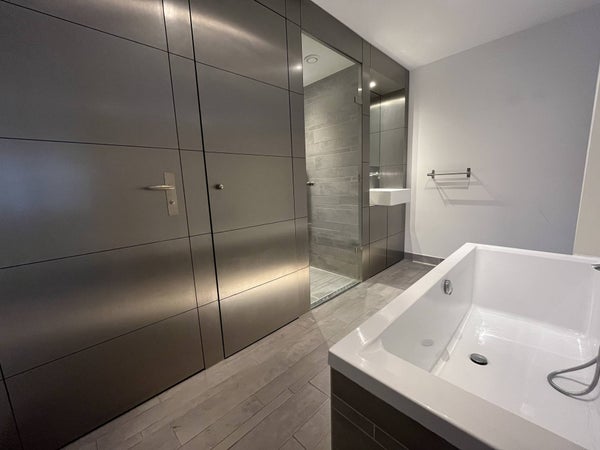 De slaapkamer met badkamer ensuite is voorzien van inloopdouche, toilet, wastafel, ligbad. In de afgesloten Cv-ruimte bevinden zich de witgoed aansluitingen.