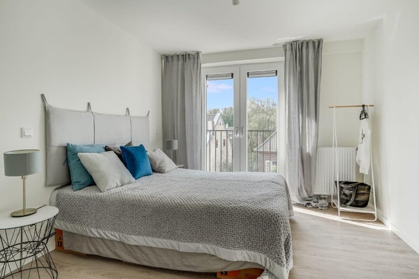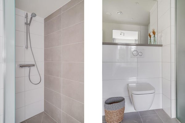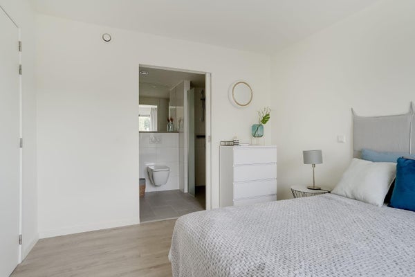 Via de woonkamer komt u in de slaapkamer. Deze slaapkamer biedt voldoende ruimte voor een tweepersoonsbed en kledingkast. De slaapkamer is direct verbonden met de luxe badkamer. De ruime badkamer is betegeld en voorzien van een inloopdouche met glazen wand en thermostaatkraan, een wastafel, toilet en design radiator.