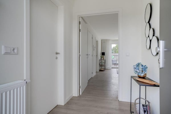 Het 3-kamer appartement heeft een praktische indeling. Via de entreehal komt u in de sfeervolle woonkamer met een moderne en comfortabel ingerichte open keuken. Door de grote ramen kunt u genieten van een bijzonder mooi uitzicht op het Jekerdal en de stad. De keuken is voorzien van een inductiekookplaat, afzuigkap, combi-oven, koelkast en vaatwasser. Via openslaande deuren komt u vanuit de woonkamer op het ruime, zonnige balkon (4 bij 2,5 meter). Een heerlijke plek voor een kop koffie!