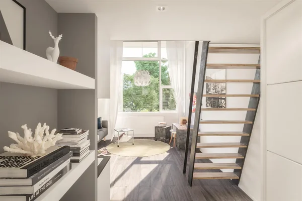 Mooie ruime studio in het campuscomplex 'Think Tank'. De studio is gelegen op de eerste etage en heeft een ruime woonkamer met open keuken (incl. apparatuur), badkamer met wastafel, douche en toilet en op de vide is een slaapkamer. Op de begane grond ligt een gemeenschappelijke ontmoetingsruimte, fietsenberging en wasruimte.