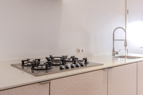- keuken voorzien van 5-pits gaskookplaat, vaatwasser, koelkast, diepvries en oven