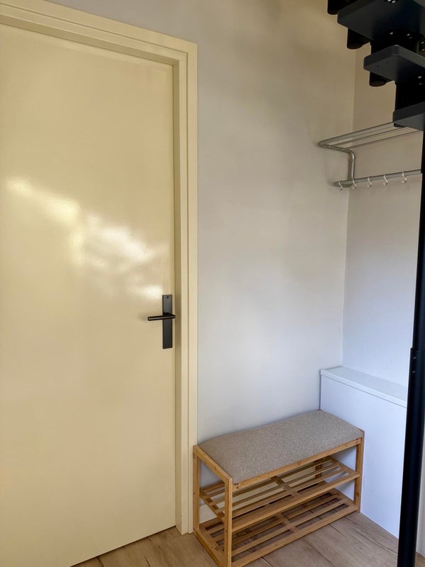 De slaapkamer is 12m² groot en biedt voldoende ruimte voor een comfortabel bed en opbergruimte, perfect voor een goede nachtrust.