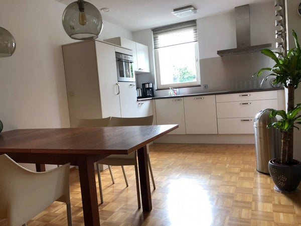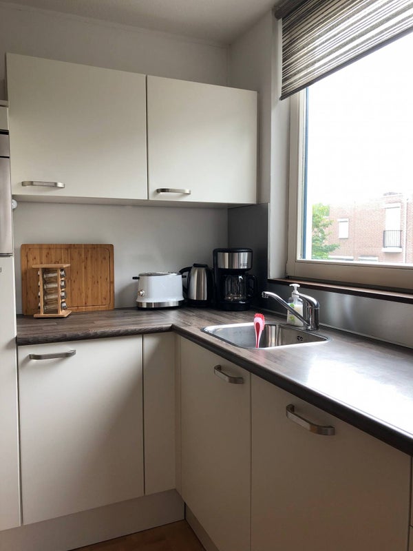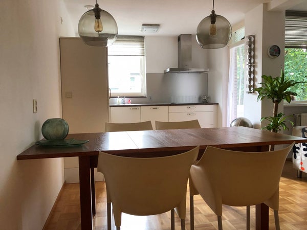De keuken is voorzien van alle gemakken met onder andere een koelkast, vrieskast, vaatwasser, kookplaat en afzuiging. Er is tevens een privé-parkeerplaats beschikbaar bij het appartement en een eigen berging in het souterrain.