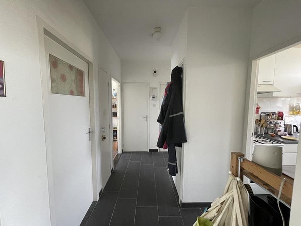 Entree-hal geeft toegang tot de verschillende kamers. Separaat toilet met fonteintje. Badkamer met douche en wastafel. De gesloten keuken is voorzien van o.a. 4-pits gasfornuis, oven en afzuigkap. Vanuit de keuken is er toegang tot het balkon aan de voorzijde met bergruimte. Er zijn twee balkons, aan de voorzijde en achterzijde.