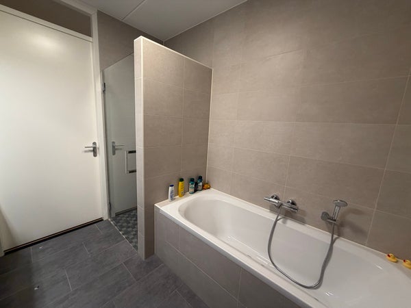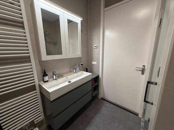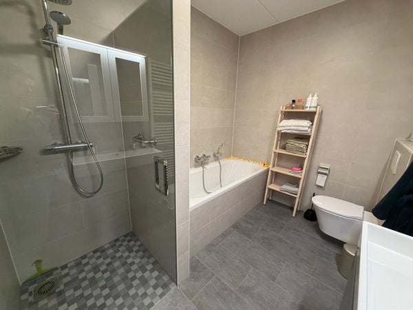 De royale badkamer beschikt over een douche, separaat bad, toilet & mooie wastafel uitgerust met 2 kranen & ruime kasten.